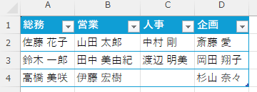 ②社員名(各部署ごと)を選択 > 名前ボックスにて名前をつける