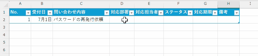 「D2」の部分は先ほど設定した部署名が入力されるセルです。