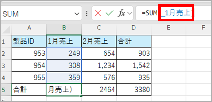 関数で範囲指定する箇所に「名前の定義」で設定した名前を入力することで活用することができます。