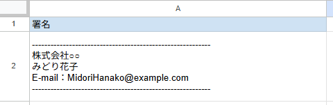 新しくシートを作り、メールの末尾に挿入したい署名内容を入力します。