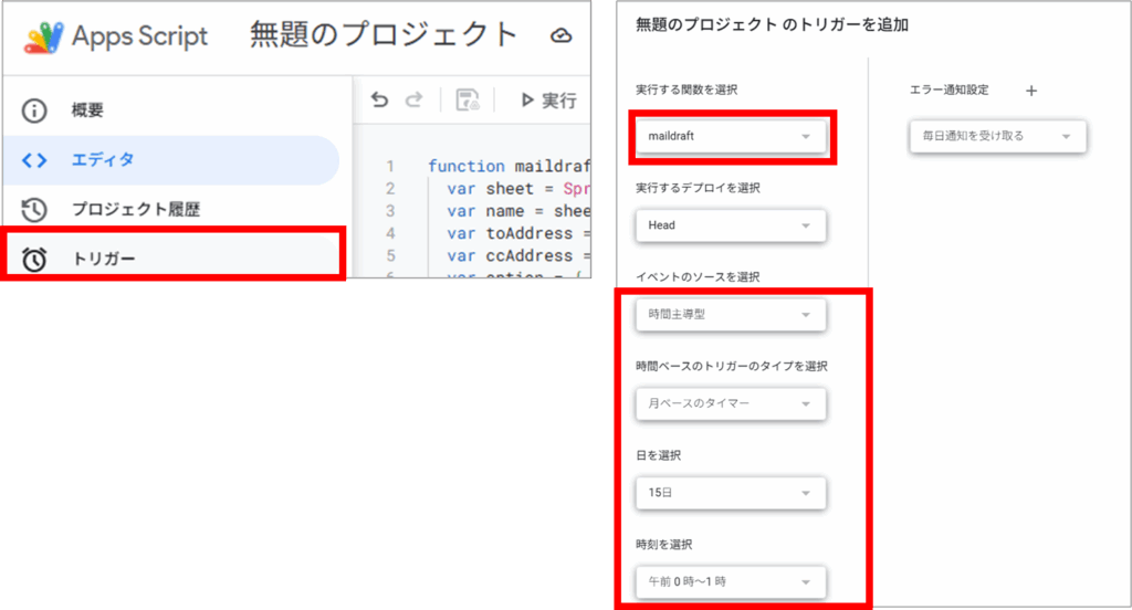 上記のままだと手動で実行する必要がありますので、定期的に自動実行されるように設定します。