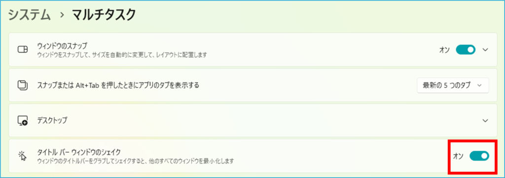 また、ウィンドウの上部を選択して左右に振ると、選択したウィンドウ以外のものを最小化することができます。